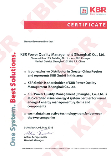 柯贝尔电能质量技术(上海)有限公司是由德国KBR GmbH公司唯一授权的一家在大中华地区持有KBR商标、销售KBR产品、提供技术和服务的公司。